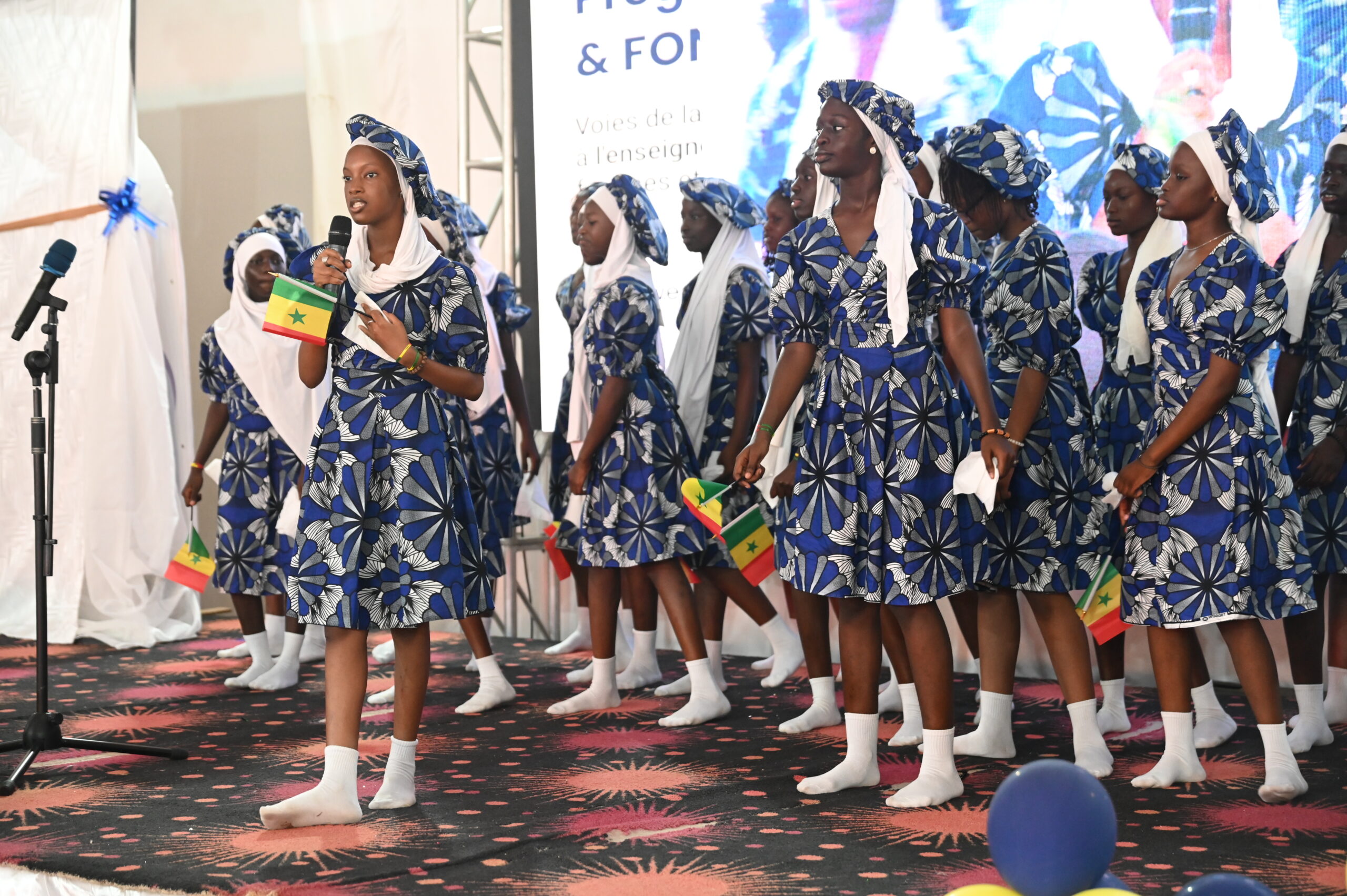 Guests were welcomed with vibrant performances from the Chœur Alegria as participants registered and explored interactive photo booths. The atmosphere grew even more symbolic with the arrival of the Guest of Honour, followed by the Senegalese national anthem and the FAWE anthem beautifully performed by students of Lycée Aminata Sow Fall, beneficiaries of FAWE’s IFFEFA project.